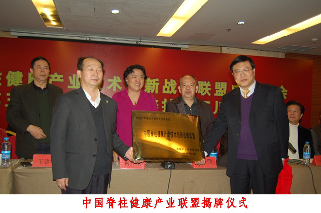 2013年11月23-24日,“中国脊柱健康产业技术创新战略联盟”在北京宣布成立,其成立的目的既可有效整合脊柱健康系列技术和产品的价值,组织制定脊柱健康行业的技术标准与服务规范,探索建立脊柱健康产业示范基地和示范企业,为脊柱健康产业发展提供平台和可借鉴的模式;还可以不断完善脊柱健康的产业结构和产业升级,引领人类脊柱健康事业的方向。